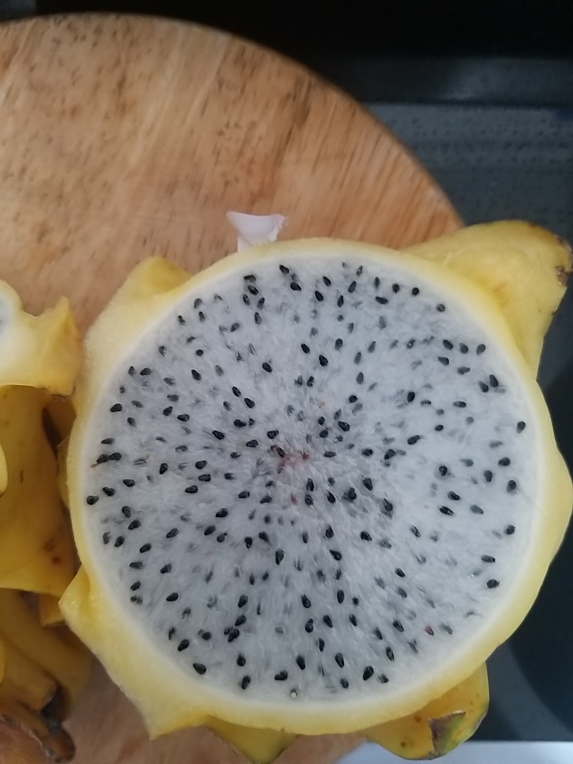 너무 기대를 해서 그랬던지 노란색 용과 생각보다 맛이 밍밍한게 상당히 별로였다. 보통 하얀색 용과가 거의 달지 않고 밍밍한 맛을 보여주는데(그래서 가격도 싸다) 내가 이번에 구매해 먹은 노란색 용과도 껍질 다 벗겨놓고 과육만 먹으면 이게 하얀색 용과인지 노란색 용과인지 구분이 안 될 정도로 달지 않았다.